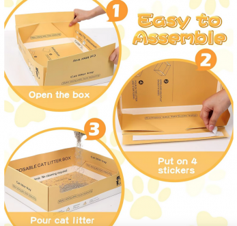 Material de calidad: la caja de arena portátil para gatos está hecha de 3 capas de papel reciclado; Diseñada con 2 capas de revestimiento impermeable por dentro y por fuera, las bandejas de arena desechables para gatos garantizan una estructura a prueba de fugas y duradera para una larga vida útil.